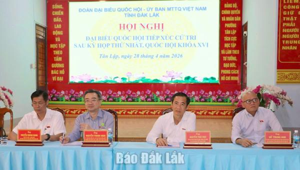 Ngày 28/4/2026, tại đơn vị bầu cử số 4, Đoàn đại biểu Quốc hội (ĐBQH) tỉnh Đắk Lắk phối hợp với Ban Thường trực Ủy ban Mặt trận Tổ quốc Việt Nam tỉnh tổ chức để đại biểu Quốc hội tỉnh Đắk Lắk tiếp xúc với cử tri các xã: Ea Drăng, Ea Khal, Ea Hiao,...