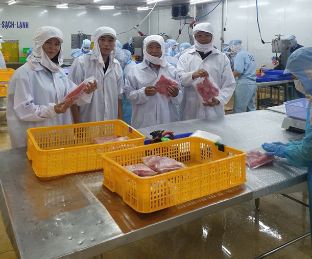 Ảnh: Đoàn khảo sát tổ chức khảo sát thực tế tại Công ty Thủy sản Tôm Vàng