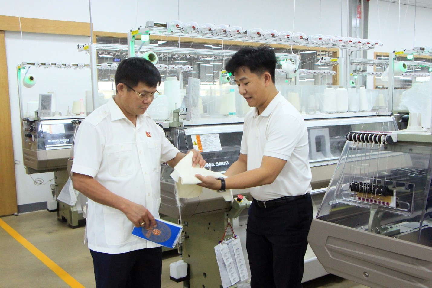 Ảnh: Đoàn khảo sát tổ chức khảo sát thực tế tại Công ty TNHH May mặc ABLE JOY