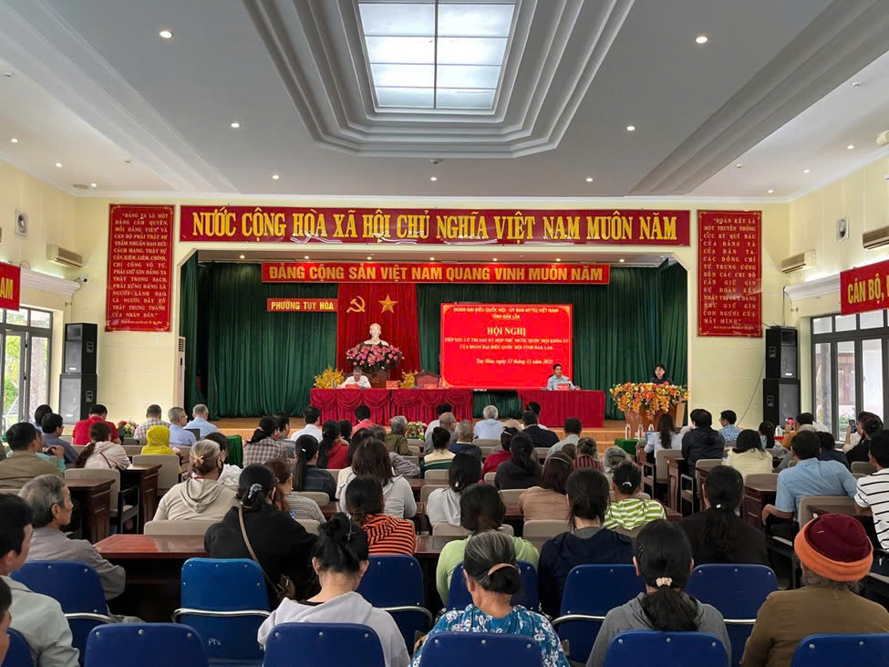Chiều ngày 12/12/2025, thực hiện Kế hoạch tiếp xúc cử tri sau Kỳ họp thứ 10 Quốc hội khóa XV, Đoàn đại biểu Quốc hội tỉnh do bà Lê Đào An Xuân,Tỉnh uỷ viên, Phó Trưởng Đoàn chuyên trách Đoàn đại biểu Quốc hội tỉnh và ông Lê Văn Thìn, đại biểu Quốc hội tỉnh, Bí thư Đảng ủy, Chủ tịch HĐND phường Bình Kiến chủ trì tiếp xúc với cử tri phường Tuy Hòa, phường Phú Yên và phường Bình Kiến, được tổ chức tại Hội trường UBND phường Tuy Hòa. Tham dự tiếp xúc cử tri có đại diện lãnh đạo các sở, ban, ngành của tỉnh, Đảng ủy, HĐND, UBND, Ủy ban MTTQVN phường Tuy Hòa và hơn 150 cử tri của 03 phường.