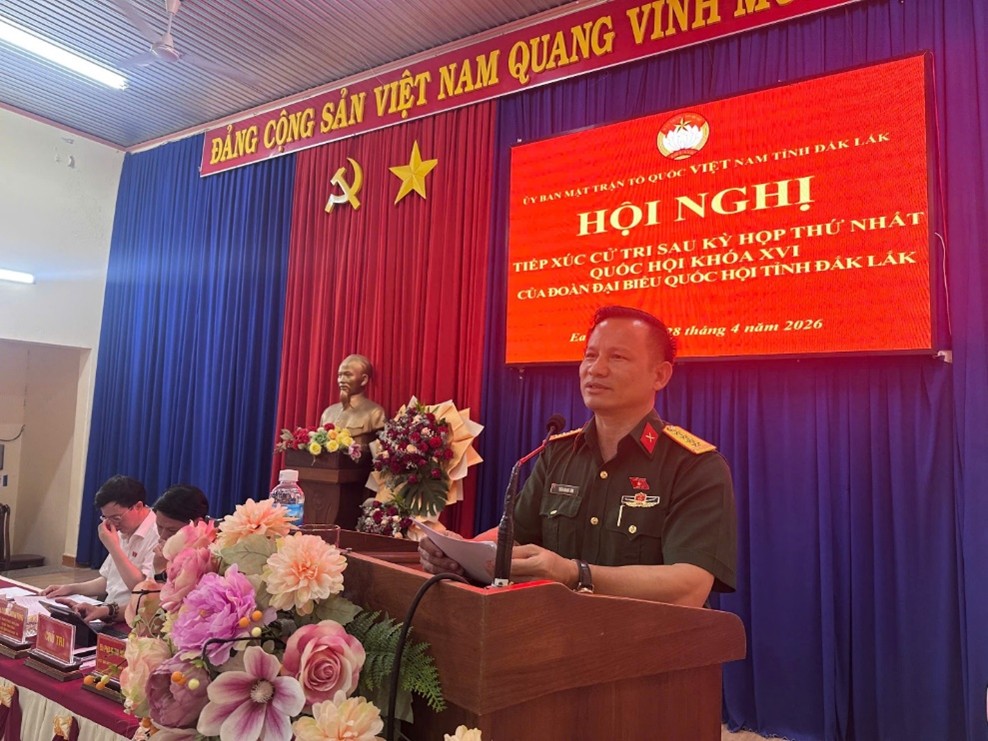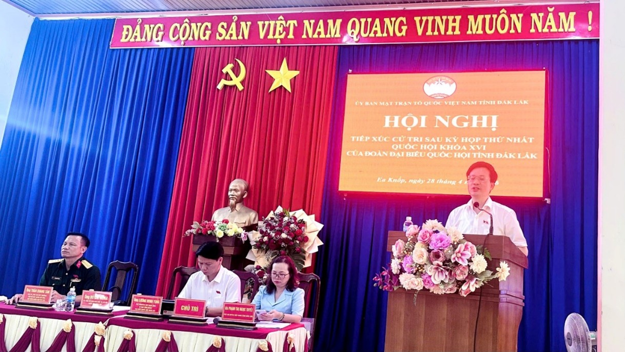Tiếp tục chương trình tiếp xúc cử tri sau Kỳ họp thứ nhất, Quốc hội khóa XVI, chiều 28/4, Đoàn đại biểu Quốc hội tỉnh Đắk Lắk gồm các đại biểu: Đỗ Chí Nghĩa, Ủy viên là đại biểu Quốc hội hoạt động chuyên trách tại Ủy ban Văn hóa và Xã hội của Quốc hội; Lương Minh Tùng, Phó Chủ tịch Ủy ban MTTQ Việt Nam tỉnh, Bí thư Tỉnh đoàn; Trần Quang Tâm, Đại tá, Phó Chỉ huy trưởng Bộ Chỉ huy Quân sự tỉnh đã tiếp xúc cử tri các xã Ea Knốp và Cư Prao tại Hội trường Ban Chỉ huy Quân sự xã Ea Knốp.