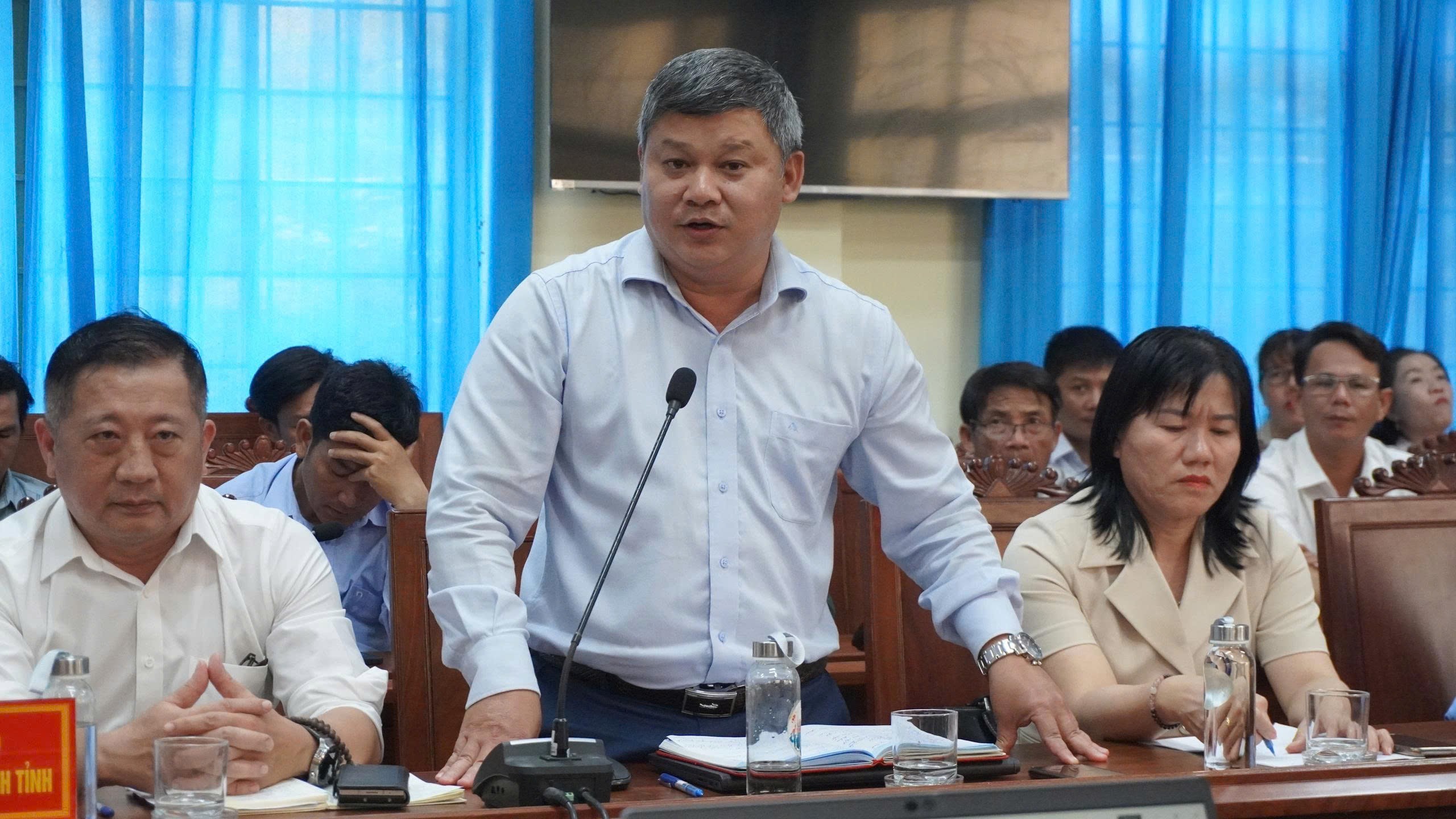 Ông Nguyễn An Phú, Phó Giám đốc Sở Nông nghiệp và Môi trường trao đổi, trả lời kiến nghị cử tri tại Hội nghị