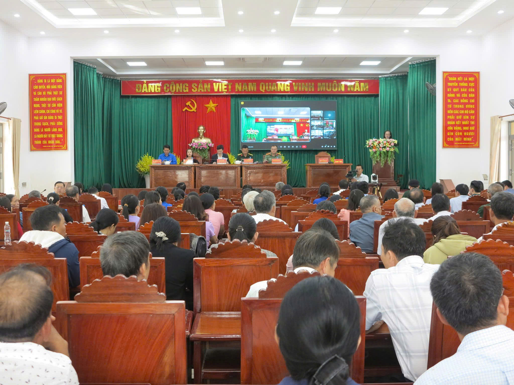 Tham dự tại các điểm cầu có các đồng chí lãnh đạo Đảng ủy, HĐND, UBND, Ủy ban MTTQVN phường, xã.