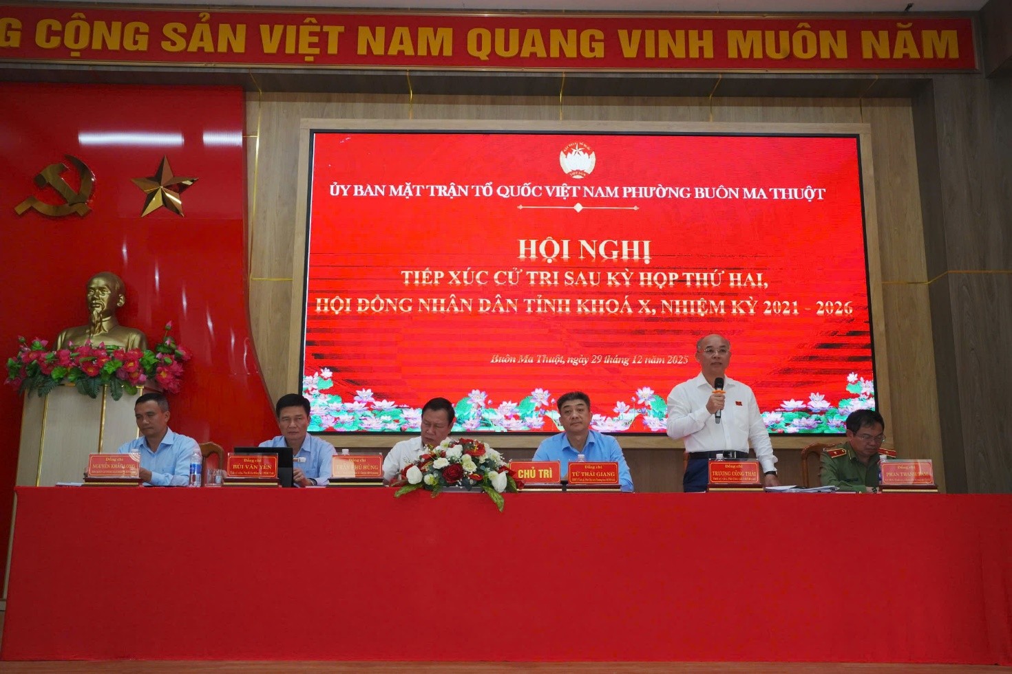 Chiều ngày 29/12/2025, tại Hội trường UBND phường Buôn Ma Thuột, Tổ đại biểu số 01 của HĐND tỉnh tổ chức TXCT sau Kỳ họp thứ Hai, HĐND tỉnh khóa X, nhiệm kỳ 2021- 2026 với cử tri các phường: Buôn Ma Thuột, Tân Lập, Tân An, Thành Nhất, Ea Kao và xã Hòa Phú.