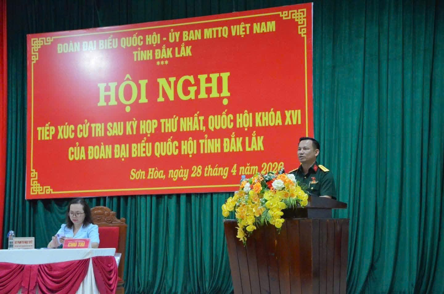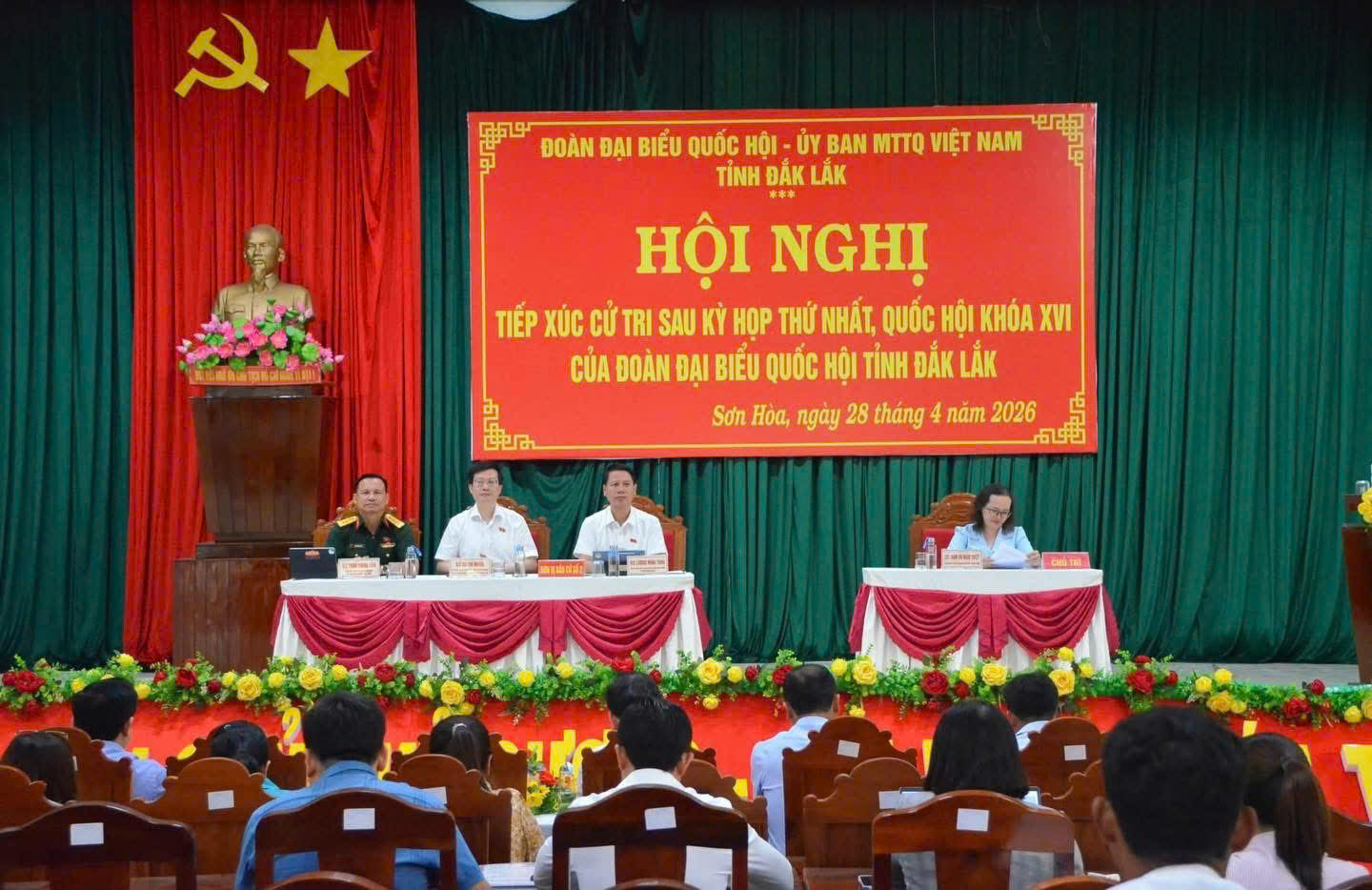 Sáng 28/4, tại xã Sơn Hòa, đại biểu Quốc hội tỉnh Đắk Lắk thuộc đơn vị bầu cử số 02 gồm các đồng chí: Đỗ Chí Nghĩa, Ủy viên là đại biểu Quốc hội hoạt động chuyên trách tại Ủy ban Văn hóa và Xã hội của Quốc hội; Lương Minh Tùng, Phó Chủ tịch Ủy ban MTTQ Việt Nam tỉnh, Bí thư Tỉnh đoàn; Trần Quang Tâm, Đại tá, Phó Chỉ huy trưởng, Bộ Chỉ huy Quân sự tỉnh đã tiếp xúc cử tri 02 xã Sơn Hòa và Suối Trai sau Kỳ họp thứ Nhất, Quốc hội khóa XVI.