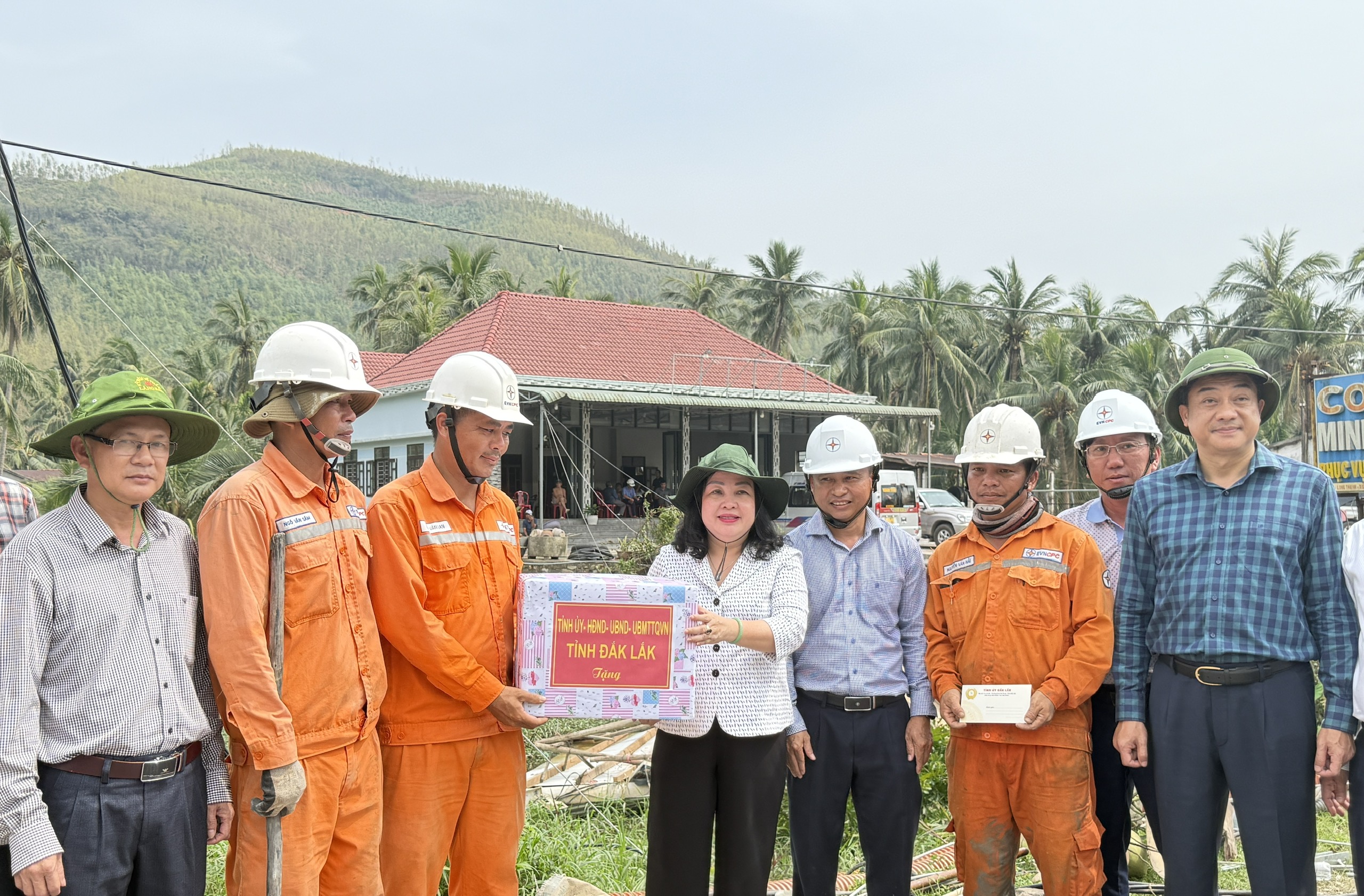 Đoàn công tác Tỉnh động viên, trao quà cho đại diện cán bộ, nhân viên Công ty Điện lực tham gia khắc phục hậu quả bão số 13