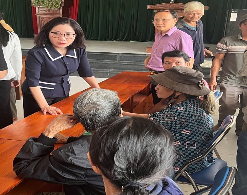 Đồng chí Nguyễn Thị Thu Nguyệt thăm hỏi, động viên người dân bị thiệt hại do mưa lũ