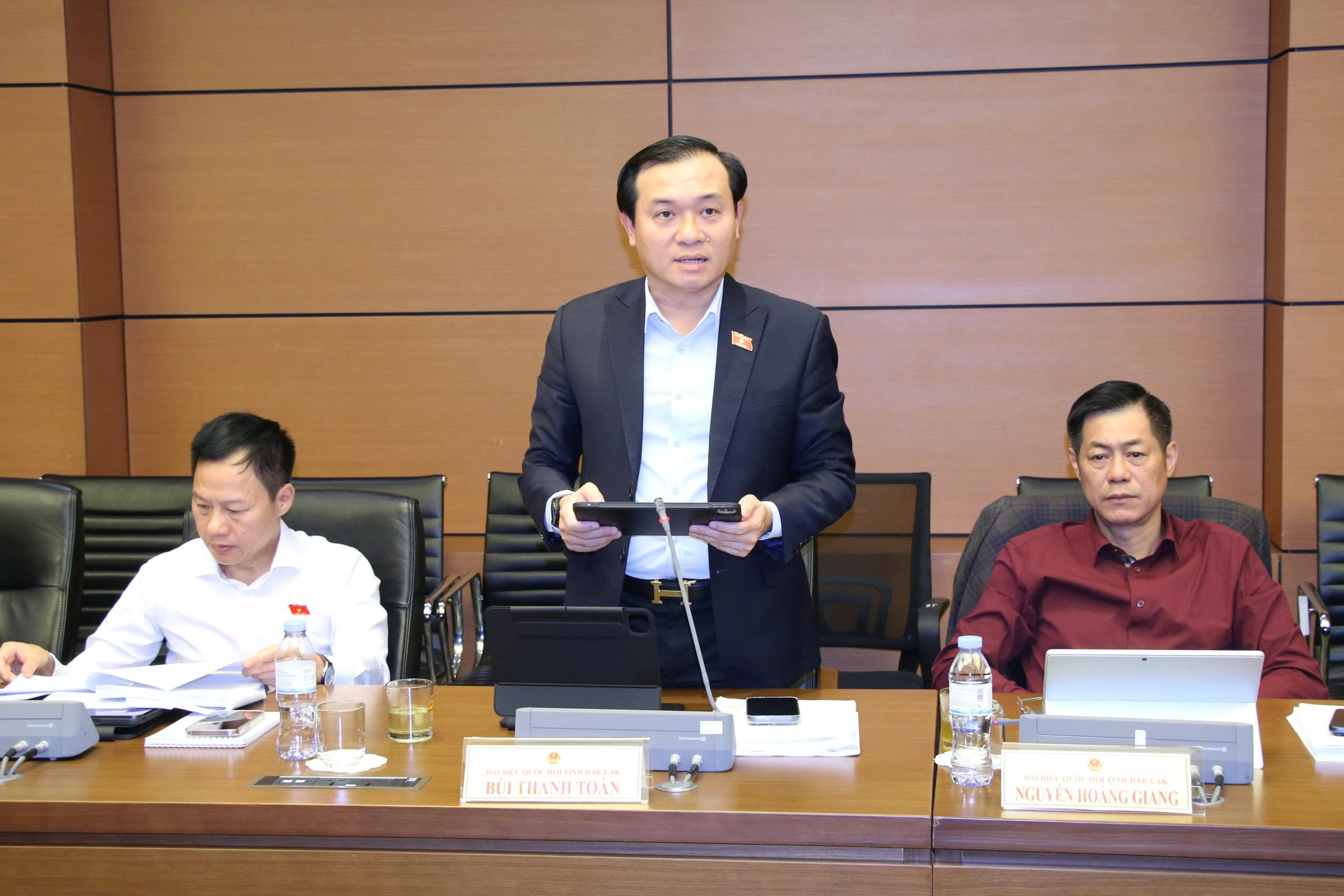 Tiếp tục Chương trình Kỳ họp thứ Nhất, Quốc hội khóa XVI, sáng ngày 20/4/2026, đồng chí Lương Nguyễn Minh Triết, Ủy viên Trung ương Đảng, Bí thư Tỉnh ủy, Trưởng Đoàn ĐBQH tỉnh Đắk Lắk chủ trì buổi thảo luận ở Tổ số 16 (gồm Đoàn ĐBQH các tỉnh: Đắk Lắk, Tuyên Quang, Cao Bằng) về các dự thảo nghị quyết: phát triển văn hoá Việt Nam; thực hiện thí điểm chế định luật sư công; việc thành lập thành phố Đồng Nai trực thuộc Trung ương.