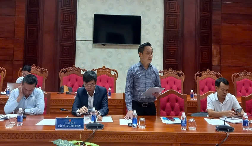 Đồng chí Lê Công Du, Phó Giám đốc Sở Xây dựng phát biểu tại Hội nghị
