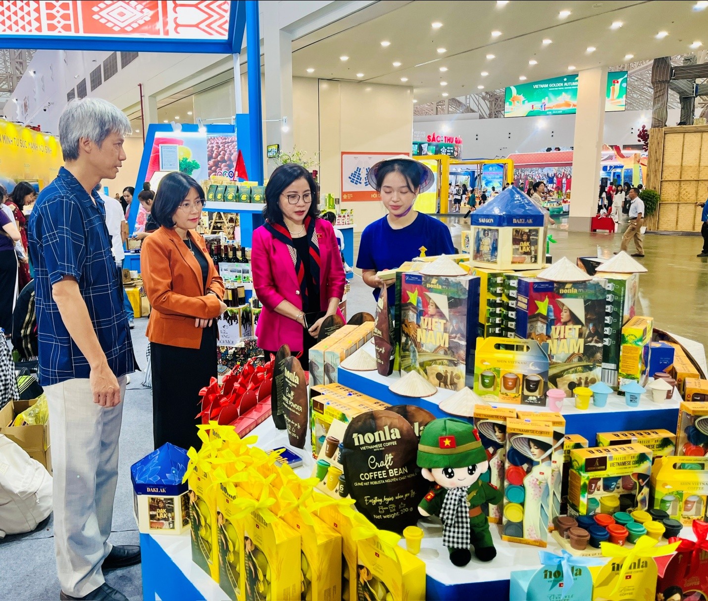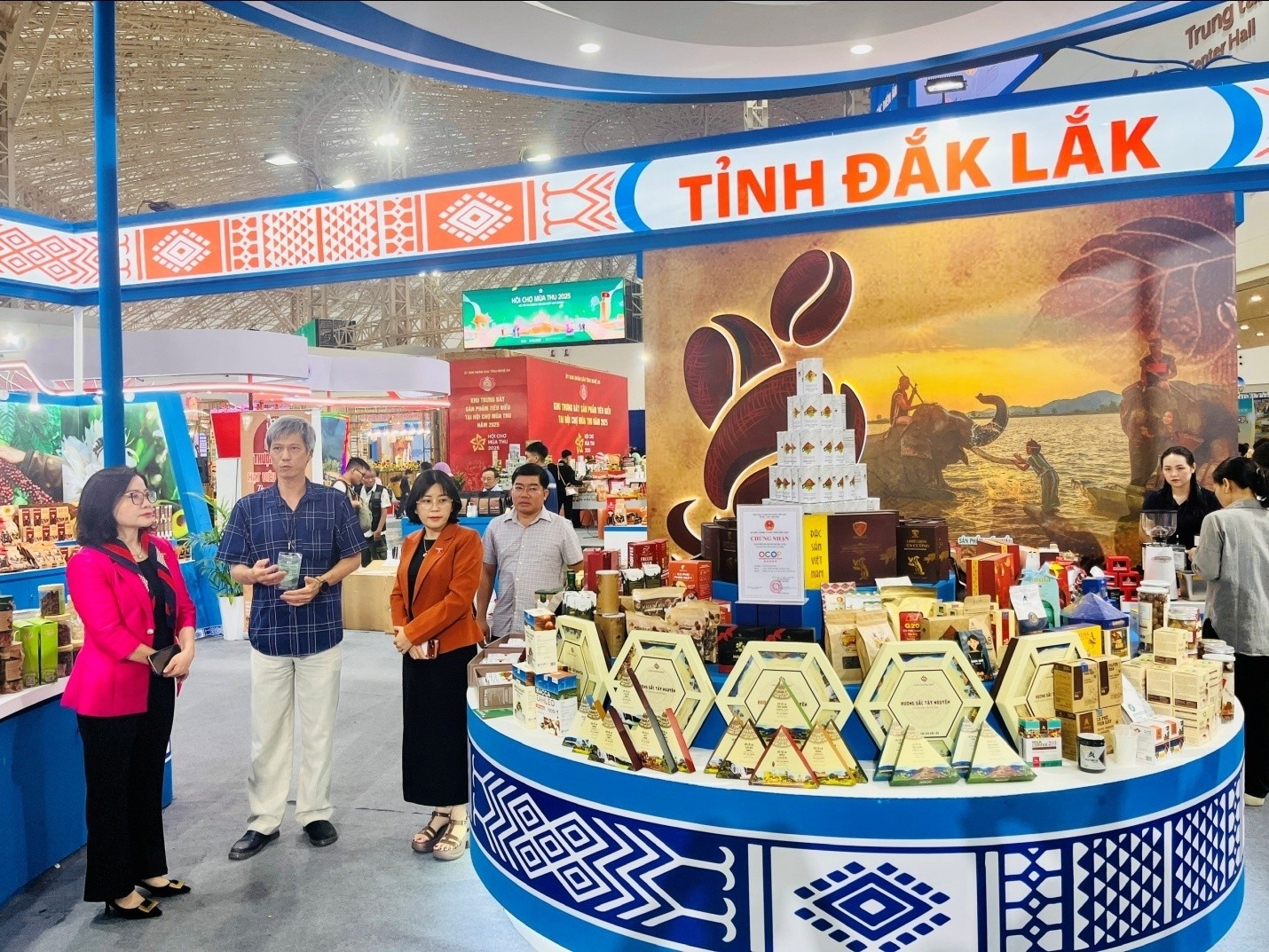 Hòa chung với không khí của hoạt động Hội chợ Mùa Thu 2025, tỉnh Đắk Lắk tổ chức tham gia Hội chợ Mùa Thu 2025 với chủ đề kép lần này là “Đột phát và phát triển” và “Phát triển xanh và bền vững”. Gian hàng chung của tỉnh thể hiện mục tiêu phát triển nhanh và bền vững cũng như thực hiện các hoạt động xúc tiến thương mại hỗ trợ, giới thiệu, quảng bá các sản phẩm đạt chứng nhận OCOP, sản phẩm công nghiệp nông thôn tiêu biểu và các sản phẩm chủ lực xuất khẩu của tỉnh, đồng thời đẩy mạnh các hoạt động xúc tiến du lịch và tìm kiếm cơ hội hợp tác, giao thương cho doanh nghiệp. Tại hội chợ lần này, tỉnh Đắk Lắk mang đến đây trên 200 sản phẩm OCOP đại diện cho 762 sản phẩm OCOP và trên 100 sản phẩm Công nghiệp nông thôn tiêu biểu các cấp, cùng nhiều sản phẩm xuất khẩu đóng góp kim ngạch lớn cho tỉnh như: cà phê đặc sản, cà phê bột truyền thống, nhiều loại cà phê chế biến sâu với hàm lượng công nghiệp cao, macca , hồ tiêu, hạt điều, sô cô la, ca cao, sầu riêng, trái cây...