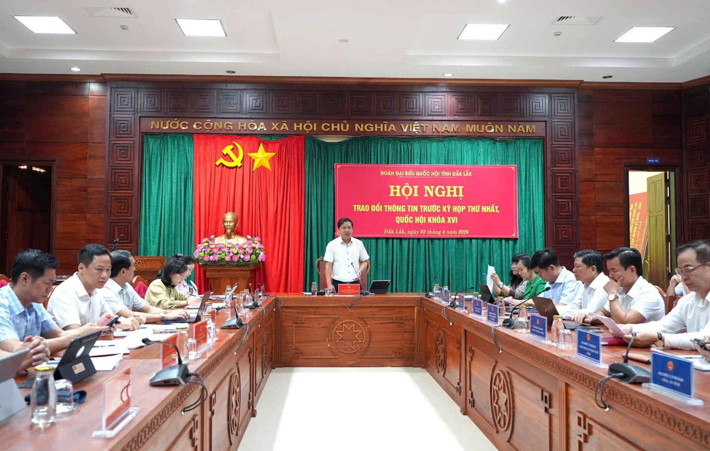 Thực hiện Nghị quyết liên tịch số 72/2025/NQLT/UBTVQH15-CP-ĐCTUBTWMTTQVN quy định chi tiết việc tổ chức tiếp xúc cử tri của đại biểu Quốc hội và đại biểu Hội đồng nhân dân các cấp của Ủy ban Thường vụ Quốc hội, Chính phủ và Đoàn Chủ tịch Ủy ban Trung ương Mặt trận Tổ quốc Việt Nam; Nghị quyết liên tịch số 100/2025/NQLT/UBTVQH15-CP-ĐCTUBTWMTTQVN về việc sửa đổi, bổ sung một số điều của Nghị quyết liên tịch số 72/2025/NQLT/UBTVQH15. Sáng ngày 02/4/2026, Đoàn đại biểu Quốc hội (ĐBQH) tỉnh tổ chức Hội nghị trao đổi thông tin trước Kỳ họp thứ I, Quốc hội khóa XVI.