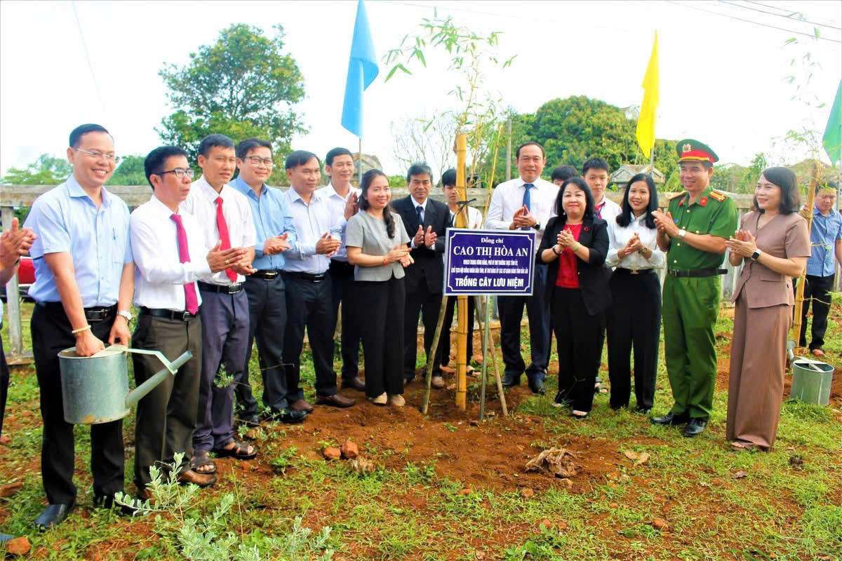 Dịp này, đồng chí Cao Thị Hoà An cùng các đồng chí trong Đảng ủy các cơ quan Đảng tỉnh và lãnh đạo xã Vân Hòa trồng cây lưu niệm và trao tặng 50 suất quà cho học sinh có hoàn cảnh khó khăn của trường.