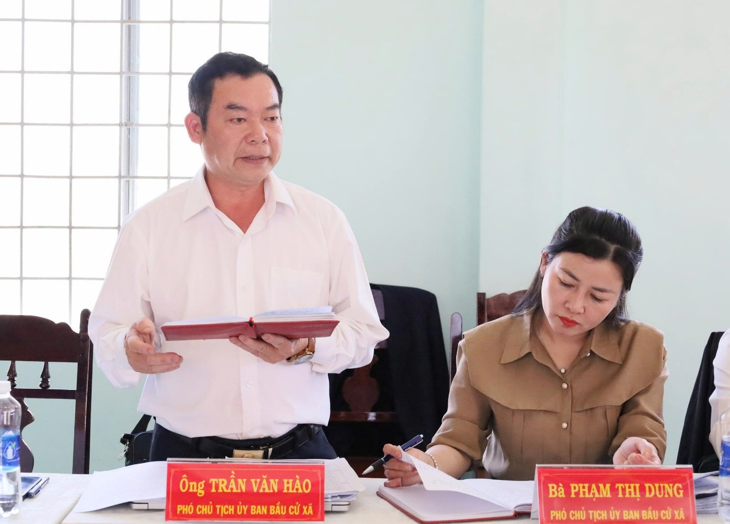 Đồng chí Trần Văn Hảo, Phó Chủ tịch Ủy ban bầu cử xã Krông Pắc báo cáo với Đoàn giám sátĐức Nghị