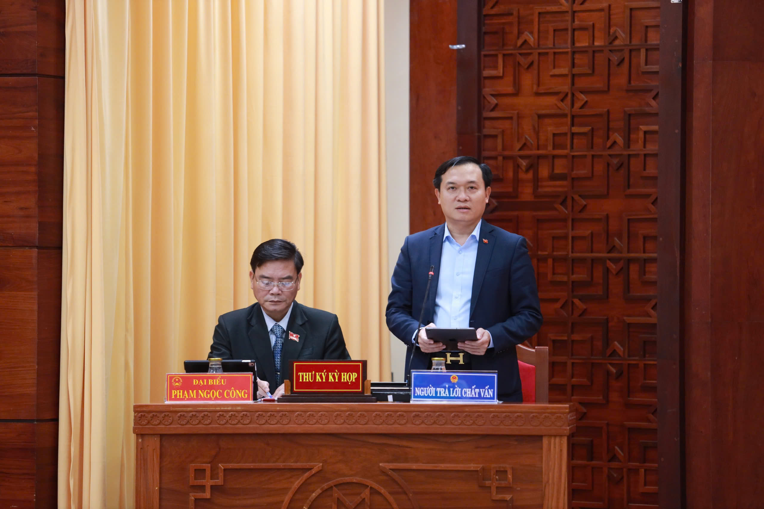 Tại phiên chất vấn, đại biểu Lê Văn Cường - Tổ đại biểu HĐND tỉnh số 13 đã chất vấn Giám đốc Sở Khoa học và Công nghệ về việc triển khai thực hiện Nghị quyết số 57-NQ/TW của Bộ Chính trị về đột phá phát triển khoa học, công nghệ, đổi mới sáng tạo và chuyển đổi số quốc gia trên địa bàn tỉnh; trong đó tập trung vào các nội dung liên quan đến cơ chế, chính sách phân bổ, giải ngân nguồn lực, thu hút nhân lực chất lượng cao và hiệu quả đầu tư cho hạ tầng chuyển đổi số.
