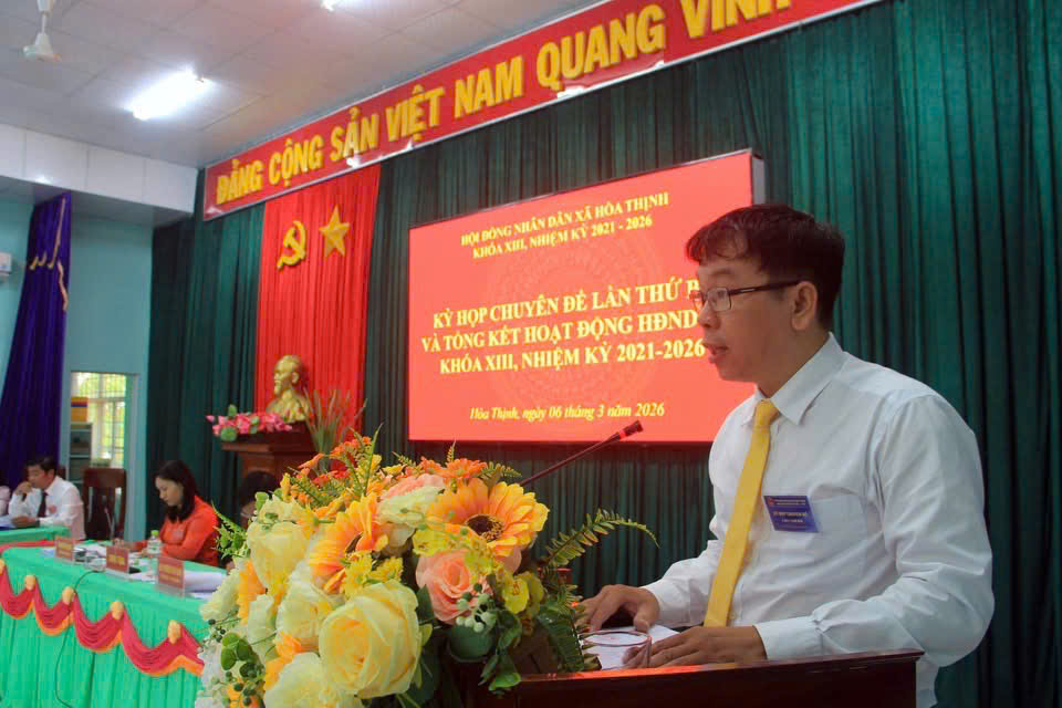 Sáng 6/3/2026, HĐND xã Hòa Thịnh khóa XIII tổ chức kỳ họp chuyên đề lần thứ ba và tổng kết nhiệm kỳ 2021 - 2026 của HĐND xã.