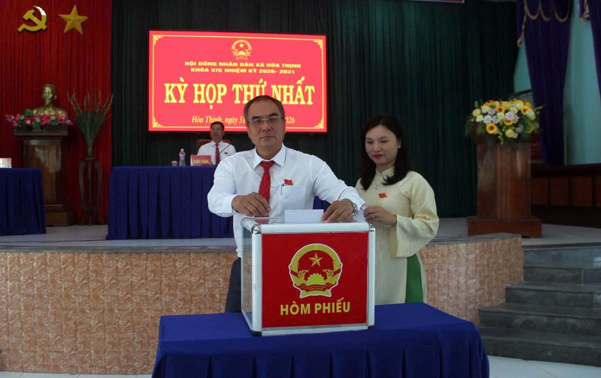 Kỳ họp đã biểu quyết và thông qua dự thảo các nghị quyết về xác nhận kết quả bầu cử các chức danh chủ tịch, phó chủ tịch, trưởng các ban HĐND xã nhiệm kỳ 2026 - 2031; nghị quyết xác nhận kết quả bầu cử chủ tịch, phó chủ tịch, ủy viên UBND xã Hòa Thịnh nhiệm kỳ 2026 - 2031.