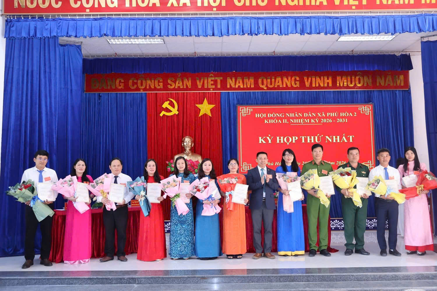 Kỳ họp thứ Nhất HĐND xã Phú Hòa 2 khóa II, nhiệm kỳ 2026-2031 đã diễn ra thành công tốt đẹp, tạo nền tảng quan trọng cho việc thực hiện thắng lợi các nhiệm vụ phát triển kinh tế - xã hội trong thời gian đến.