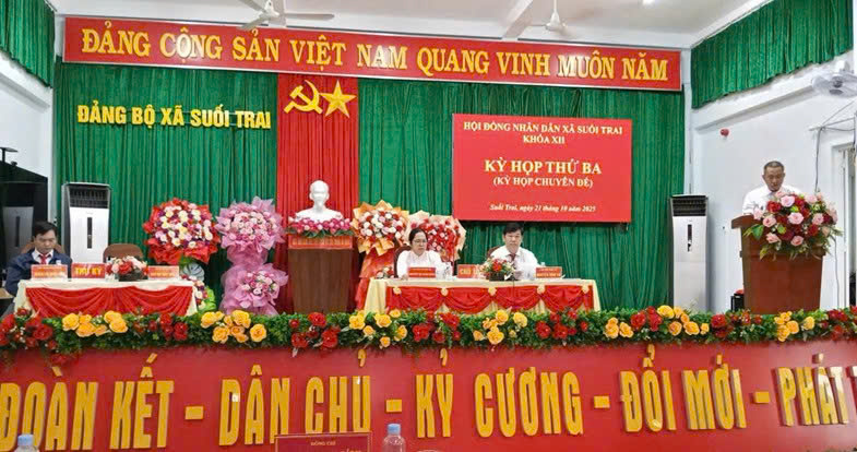 Sáng ngày 21/10/2025, Hội đồng nhân dân xã Suối Trai khóa I, nhiệm kỳ 2021 - 2026 đã tổ chức Kỳ họp thứ ba (kỳ họp chuyên đề). Các đồng chí: Nguyễn Đình An, Bí thư Đảng ủy, Chủ tịch HĐND xã; Nguyễn Thị Thanh Hằng, Ủy viên Ban Thường vụ Đảng ủy, Phó Chủ tịch HĐND xã, chủ tọa kỳ họp.