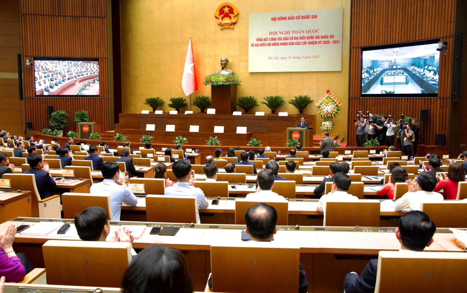 Đánh giá chung về kết quả cuộc bầu cử, Chánh Văn phòng Hội đồng Bầu cử quốc gia Lê Quang Mạnh khẳng định, trong bối cảnh triển khai mô hình chính quyền địa phương 2 cấp với nhiều khó khăn, cử tri cả nước đã bầu đủ 500 đại biểu Quốc hội, 2.552 đại biểu Hội đồng nhân dân cấp tỉnh và 72.438 đại biểu Hội đồng nhân dân cấp xã. Công tác nhân sự được chuẩn bị kỹ lưỡng, bảo đảm tiêu chuẩn, chất lượng; cơ cấu đại biểu tiếp tục được hoàn thiện theo hướng tăng đại biểu chuyên trách, nâng cao trình độ và tính đại diện. Chánh Văn phòng Hội đồng Bầu cử quốc gia khẳng định, cuộc bầu cử đại biểu Quốc hội khóa XVI và đại biểu Hội đồng nhân dân các cấp nhiệm kỳ 2026-2031 đã thành công rất tốt đẹp. Hội đồng bầu cử quốc gia tin tưởng rằng, với niềm tin và quyết tâm mới, Quốc hội khóa XVI, Hội đồng nhân dân các cấp nhiệm kỳ 2026-2031 sẽ phấn đấu hoàn thành xuất sắc nhiệm vụ, đáp ứng kỳ vọng, niềm tin yêu của cử tri và Nhân dân cả nước.
