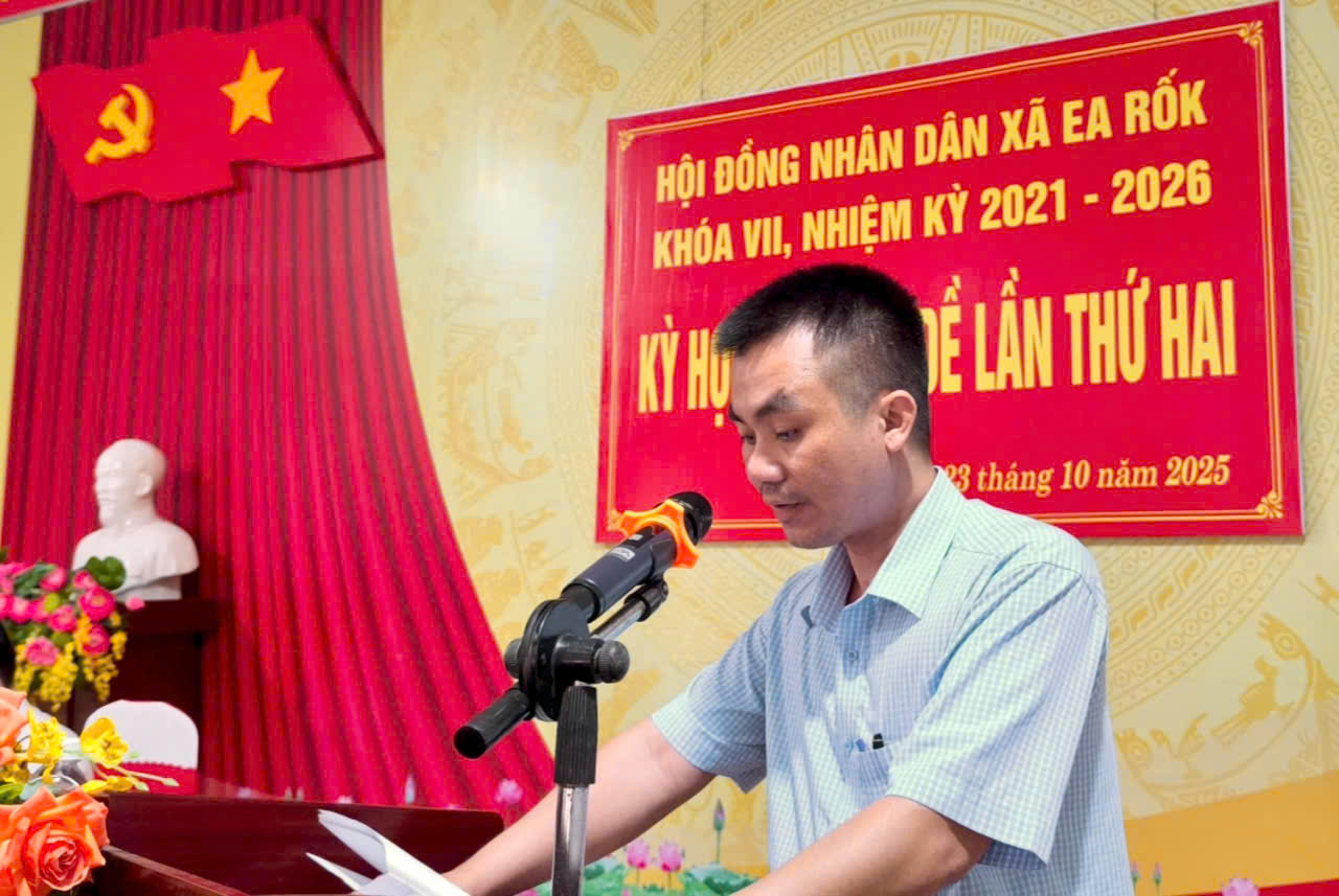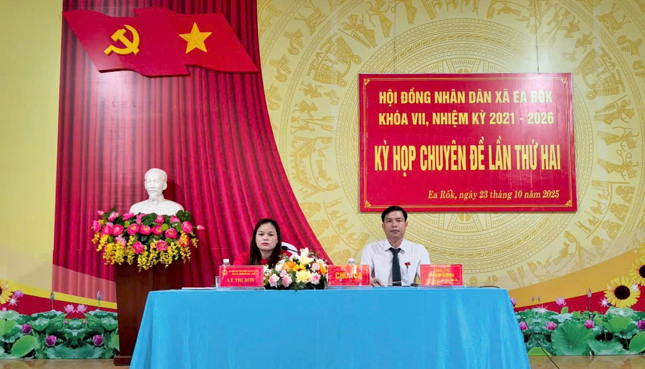 Ngày 23/10/2025, Hội đồng Nhân dân xã Ea Rốk khóa VII, nhiệm kỳ 2021–2026 tổ chức Kỳ họp Chuyên đề lần thứ Hai nhằm xem xét, thảo luận và quyết nghị một số nội dung trọng tâm phục vụ công tác chỉ đạo, điều hành phát triển kinh tế – xã hội địa phương. Đồng chí Phạm Công, Bí thư Đảng ủy, Chủ tịch HĐND xã; đồng chí Lý Thị Hơn, Phó Chủ tịch HĐND xã chủ tọa kỳ họp.