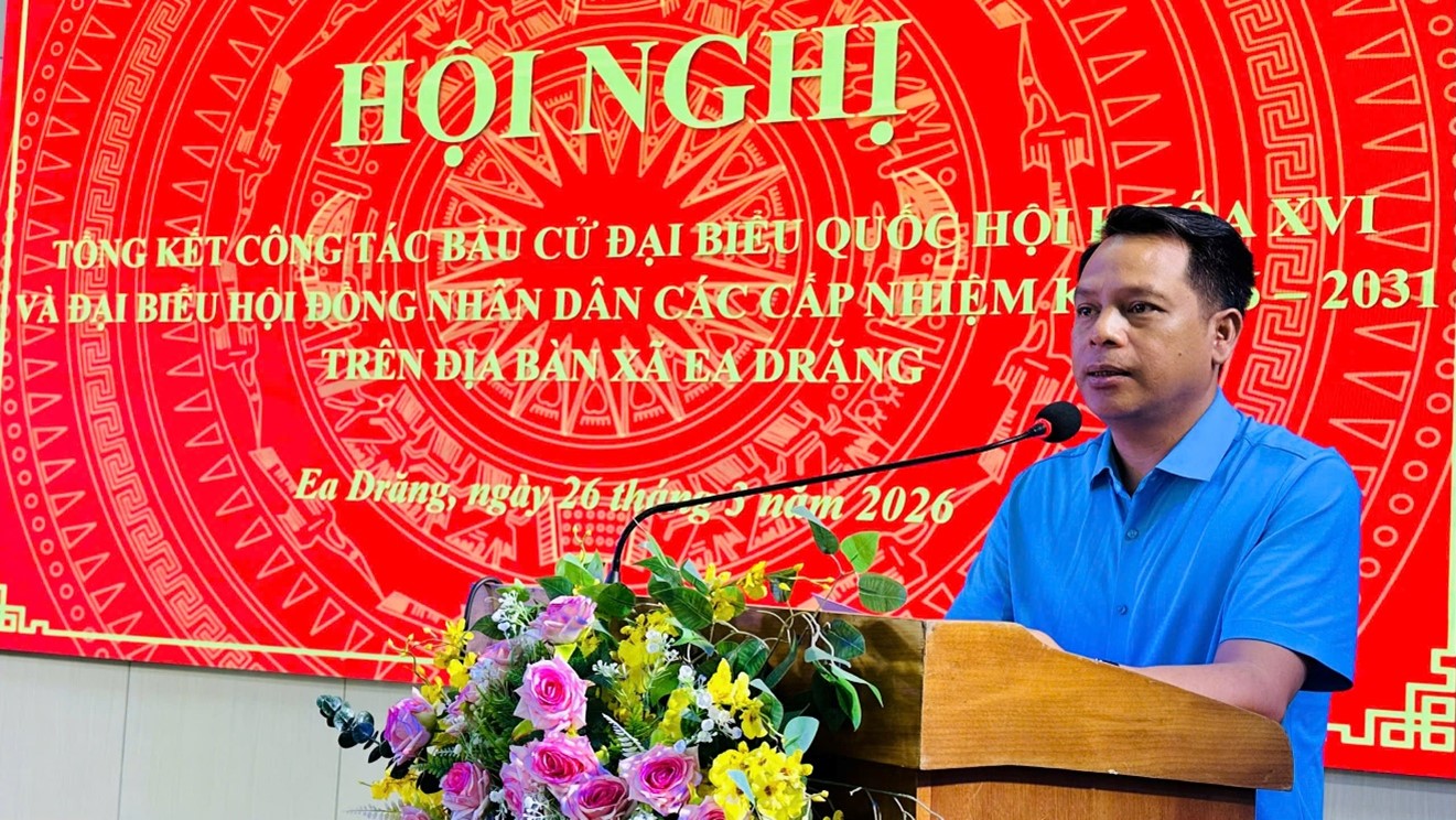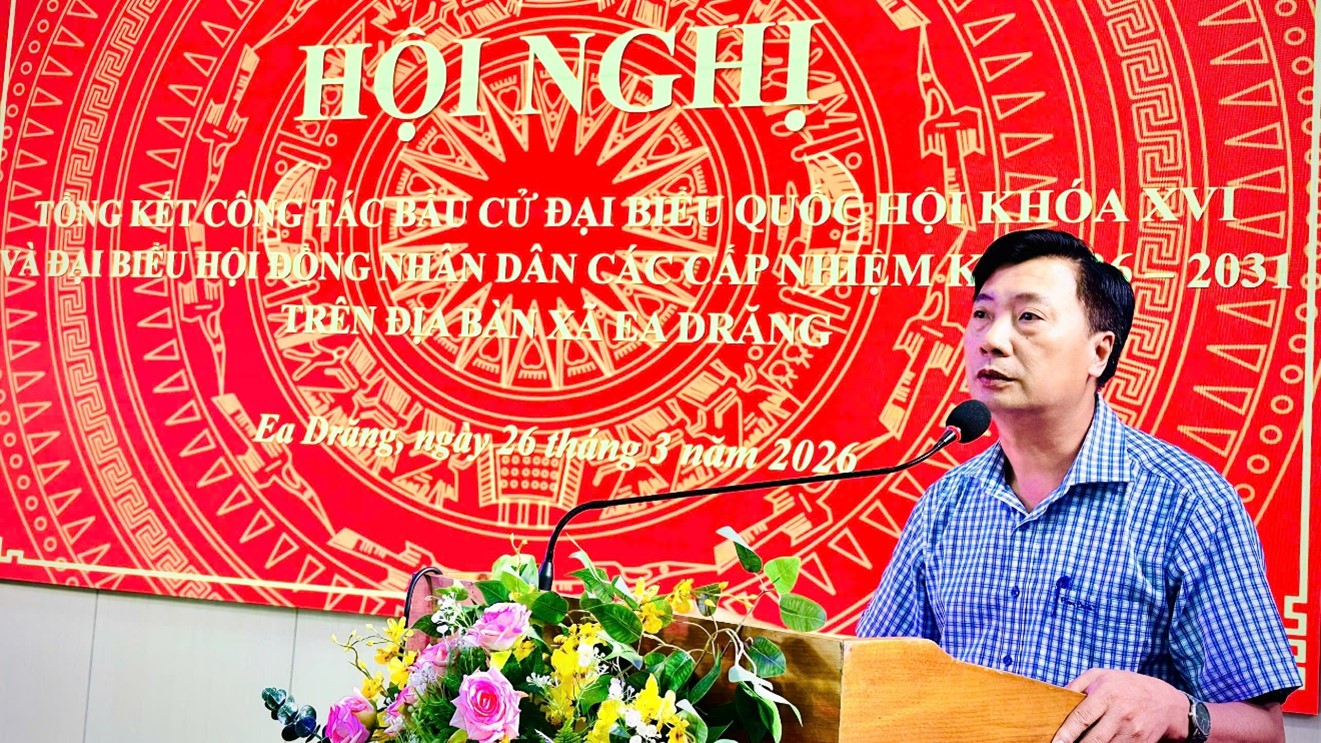 Ngày 26/3/2026, Ủy ban bầu cử xã Ea Drăng tổ chức Hội nghị tổng kết công tác bầu cử đại biểu Quốc hội khóa XVI và bầu cử đại biểu HĐND các cấp nhiệm kỳ 2026–2031.
